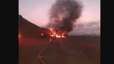 حريق يقضي على 3 مركبات بالعقبة في طريق بورتسودان