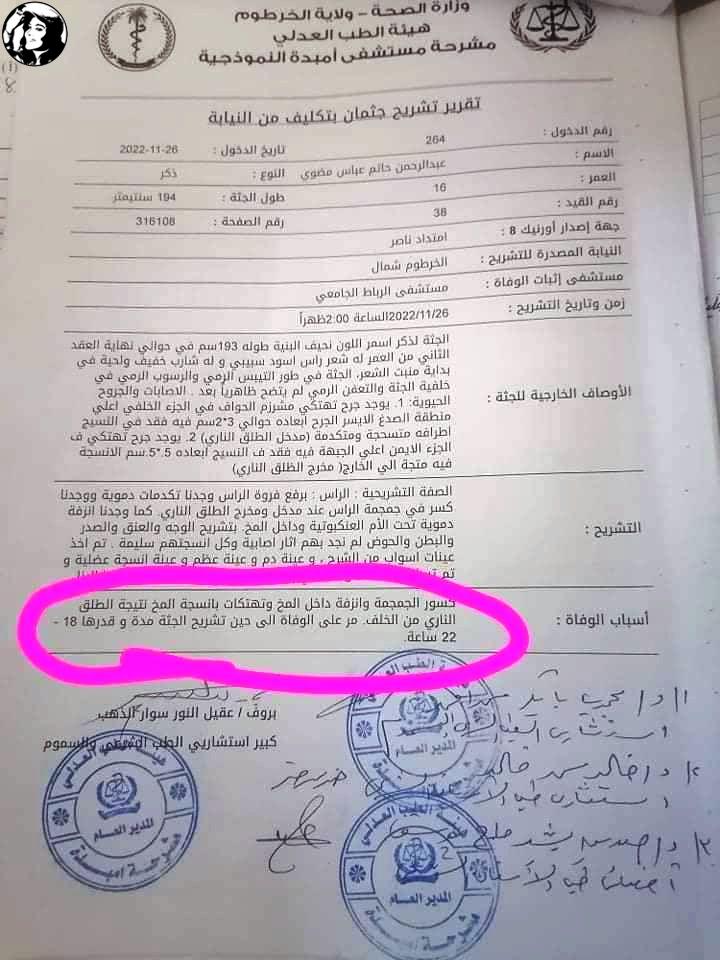 عاجل ..تأكيداً لإنفراد صوت السودان ….صورة من تقرير الطب الشرعي لتشريح جثامين أسرة بري