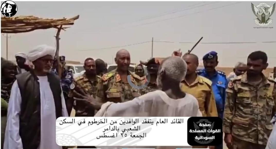 تفقد قائد الجيش السوداني الفريق أول ركن عبدالفتاح البرهان، المواطنين المتأثرين من الحرب في الخرطوم، في الإسكان الشعبي بمنطقة الدامر.