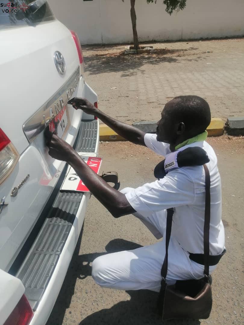 شرطي مرور “يفك” لوحة سيارة تتبع للأمم المتحدة ببورتسودان