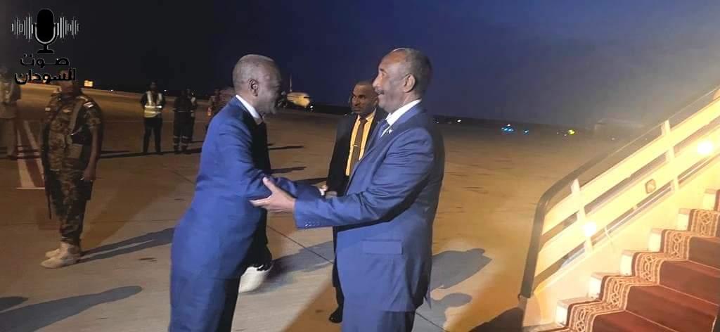 وكان في إستقباله بمطار بورتسودان، وزير المعادن محمد بشير نمو و الأمين العام لمجلس السيادة الفريق ركن محمد الغالي علي يوسف.
