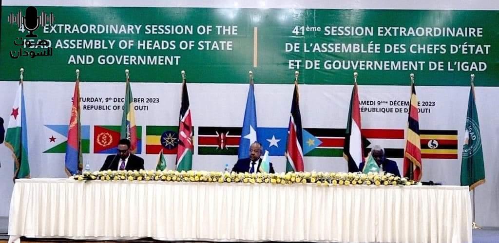 اصدرت الهيئة الحكومية للتنمية الإيقاد، البيان الختامي لقمة جيبوتي، واعلن البيان تاكيد الفريق أول عبد الفتاح البرهان رئيس مجلس السيادة الانتقالي بجمهورية السودان، القاطع بالتزامه بوقف إطلاق النار غير المشروط وحل النزاع من خلال الحوار السياسي وموافقته على اقتراح الجمعية بعقد اجتماع فردي مع قائد قوات الدعم السريع، بتيسير من الهيئة الحكومية الدولية المعنية بالتنمية.