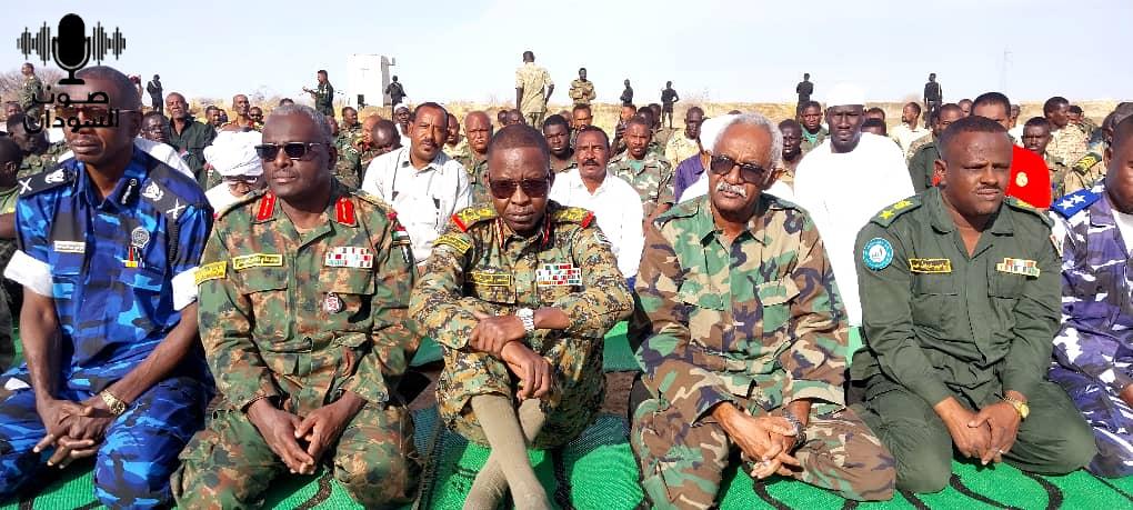ادي الفريق أول ركن شمس الدين كباشي عضو مجلس السيادة نائب القائد العام للقوات المسلحة و الأستاذ عمر الخليفة عبد الله والي ولاية النيل الابيض صلاة عيد الفطر المبارك مع القوات المرابطة في ارتكاز منطقة حماري بمحلية ربك علي الطريق الرابط بين ولايتي النيل الأبيض وسنار وذلك بحضور