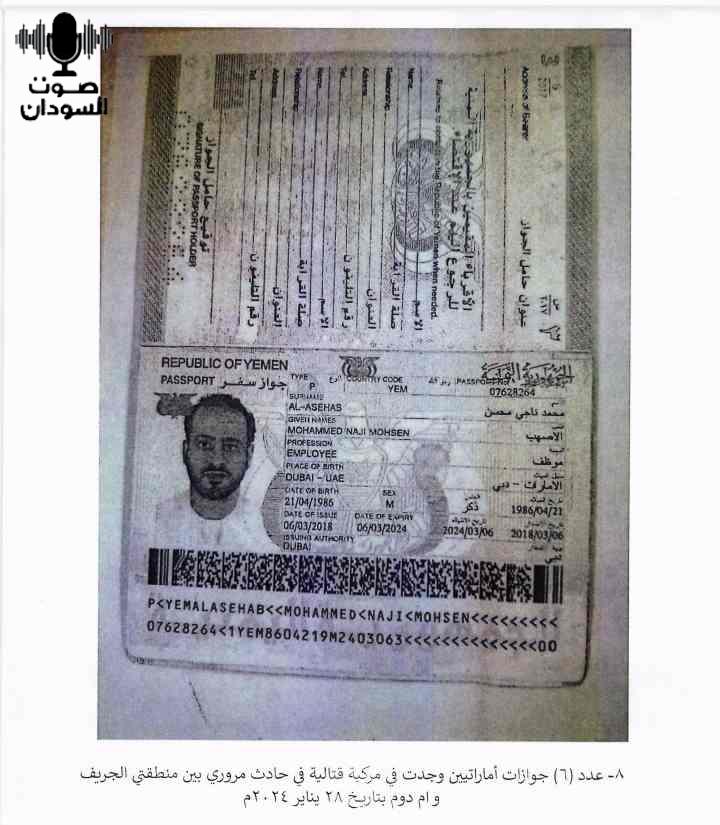 وأظهر التقرير الذي تحصل صوت السودان على نسخة منه صورا لجوازات إماراتية واسلحة و وثائق تثبت وتدين دعم الامارات للميليشيا