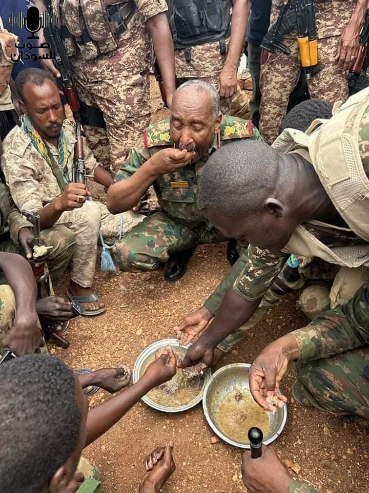 تداول ناشطون على نطاق واسع صورة من ارض المعركة بجبل موية يظهر فيها القائد العام للجيش السوداني يتناول وجبة الإفطار،