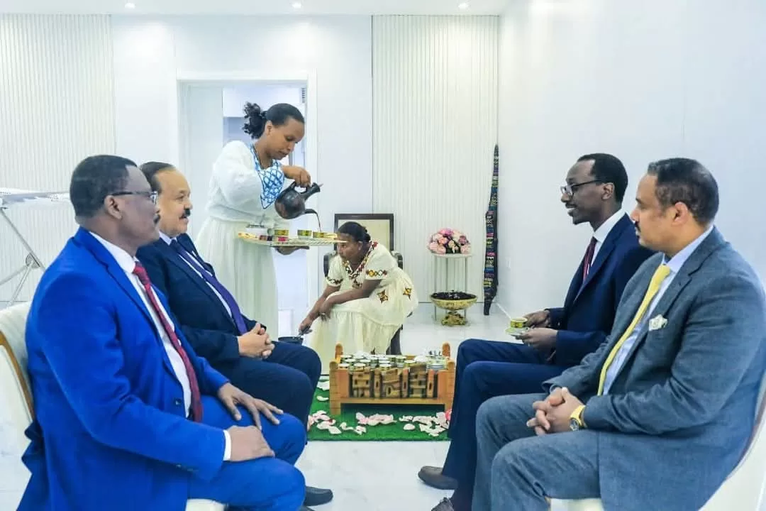 تناول وزير الخارجية السوداني د. علي يوسف الشريف مع نظيره الإثيوبي قيدون تموثيث، القهوة بالطريقة التقليدية الشعبية أمام مكتب الأخير