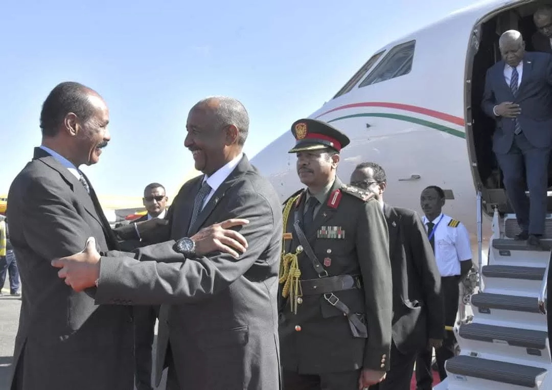 كما أشاد البرهان بالعلاقات الثنائية بين السودان وإريتريا، مؤكداً حرصه على تعزيزها في كافة المجالات لما فيه مصلحة البلدين.