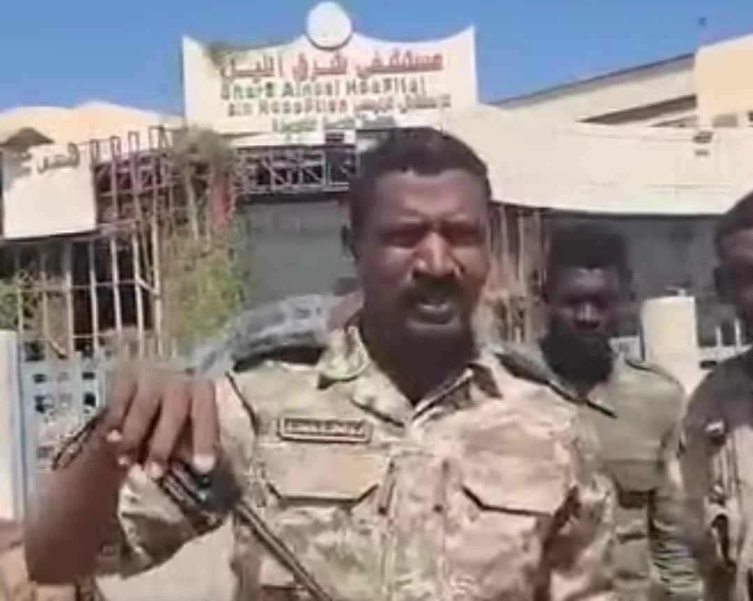 وجه اللواء ابو عاقلة كيكل قائد قوات درع السودان من أمام مستشفى شرق النيل رسالة قوية لمتمردي مليشيا الدعم السريع عبر مقطع فيديو بتاريخ اليوم الرابع من رمضان 1446 هـ الموافق الرابع من مارس 2025م