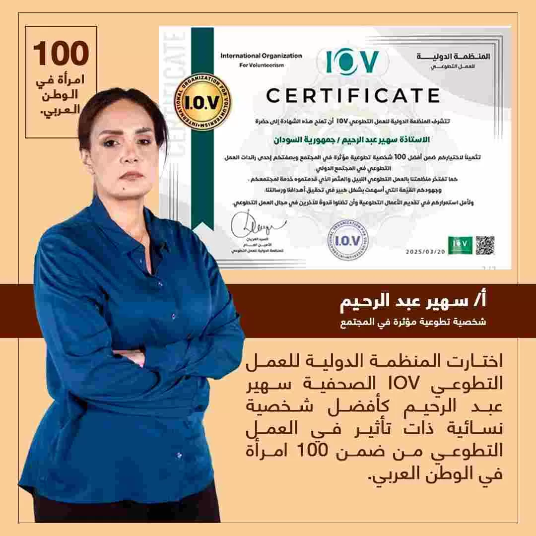 بمناسبة اختيارها من ضمن 100 امراة موثرة في العمل الطوعي الانساني من قبل